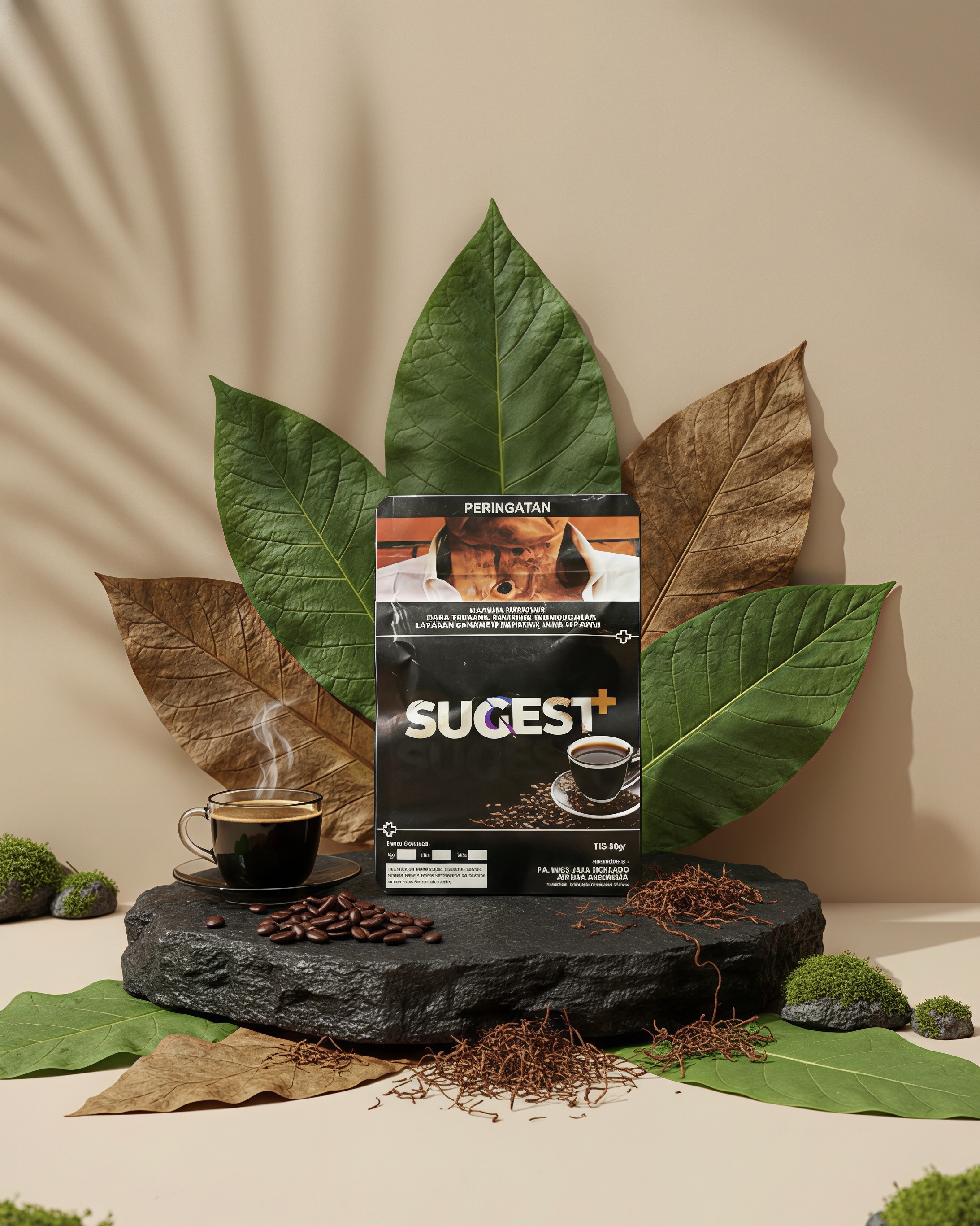 SUGEST+ memadukan tembakau pilihan dengan aroma kopi hitam yang kuat dan hangat. Menghadirkan sensasi rasa yang bold, smooth, dan berkarakter, cocok untuk penikmat tembakau dengan sentuhan kopi yang elegan dan menenangkan.
